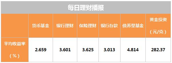 昨日整体产品收益均为下滑态势。银行理财产品平均收益率为3.601%,较上周五下滑0.7BP。货币基金指数(平均七日年化)为2.659%,较上周五下调3BP。保险理财收益较上周五下滑1.2BP;债基收益下滑0.6BP;金价下调190BP,为当日最大降幅。(数据来源:中国电子银行网-财源源)