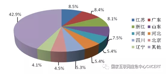 图2 2019年上半年我国受计算机恶意代码攻击的IP分布情况