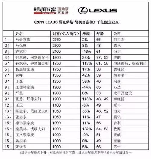 今天是2019年10月16号,和大家聊一聊2019年胡润百富榜名单。
