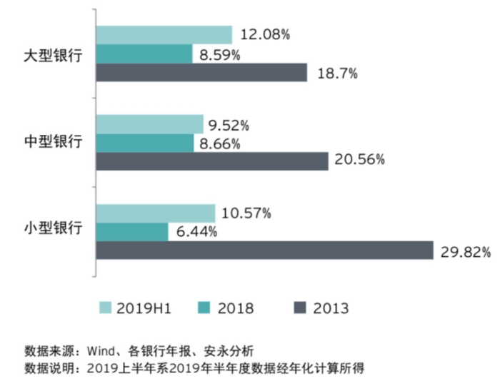 图为城农商行分类规模增速表现