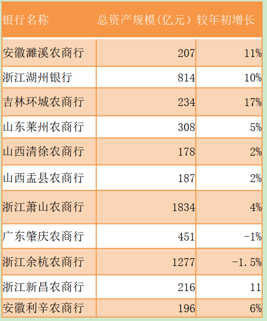 截至目前,已有11家中小银行披露了2020年半年报,第一财经记者梳理发现,上半年,中小银行总资产增长乏力,较年初大部分呈个位数增长,其中广东肇庆农商行、浙江余杭农商行两家银行总资产出现负增长。