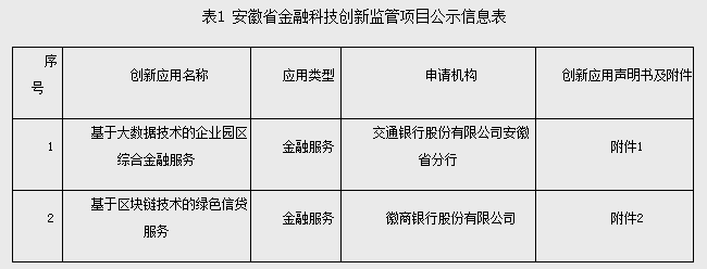 7月23日,安徽省金融科技创新监管工具第一批创新应用(2个)对外公示。