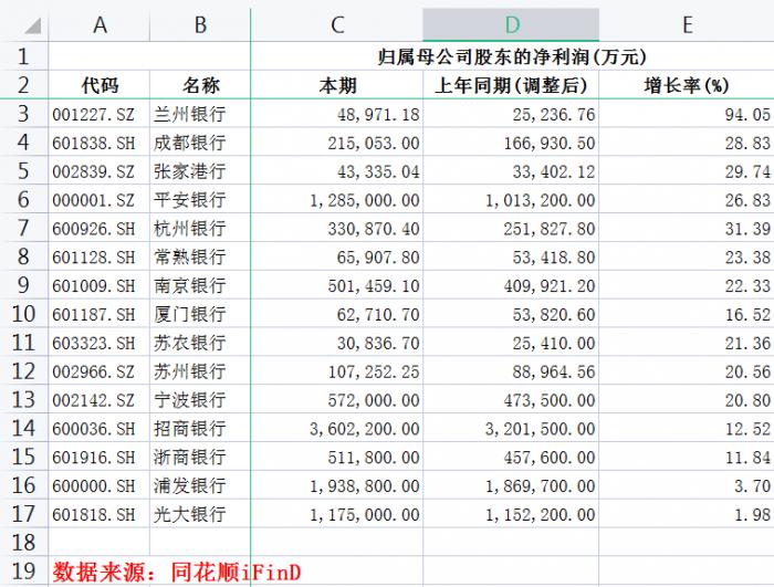 13家银行归母净利增速均超10%