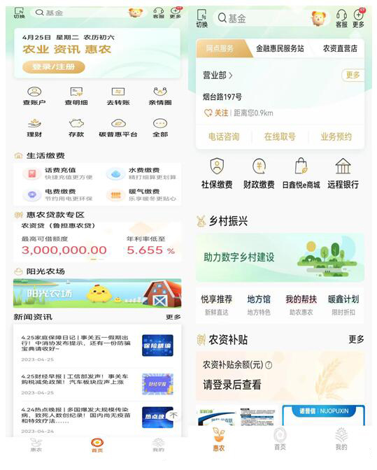 2.融合特色场景,满足美好生活期待。智慧APP6.0立足于客户美好生活的需求,从客户服务相关性出发,融合日鑫悦e“生活+”场景,依托客户积分权益体系,围绕助农、政务民生、衣食住行等场景打造一站式生活服务平台。智慧APP6.0整合异业生态合作伙伴,引入云缴费、云闪付等合作平台,上线饿了么、影票、出行等生活场景服务,对接地理标志、山东手造、乡村振兴、三同优选等品牌商户及青岛啤酒、华为等知名产品,打造地方特色版块,链接网点自有生态,推出“暖鑫计划”,主打扶贫、公益、乡村振兴、服务三农、助力小微等工作内容和系列活动。