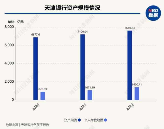 2023年3月30日,天津银行发布2022年业绩公告。数据显示,截至2022年末,天津银行资产规模人民币7610.8亿元,较上年末增长5.7%;负债规模人民币7004.6亿元,较上年末增长5.8%。