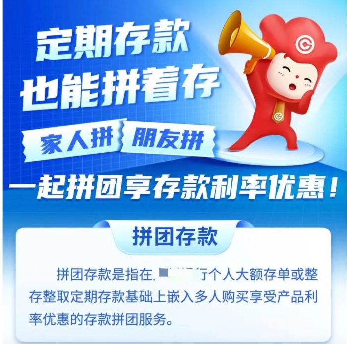 “拼团存款,爱‘拼’才会‘盈’”、“拼团理财,生财聚财”,近期,有银行在公众号推文中打出上述广告语。据第一财经记者了解,近期,部分地方性银行在存款、理财产品等领域重启 “拼团”模式,多人组队购买存款、理财产品时,可获得限时优惠利率或额外礼品。