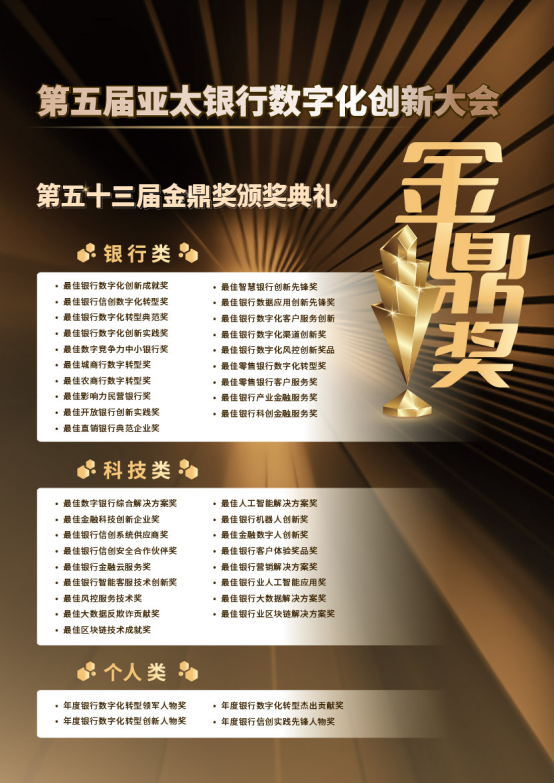 本次大会设有第五十三届金鼎奖,旨在表彰在银行业数字化创新领域取得杰出成就的机构和个人,欢迎申报!