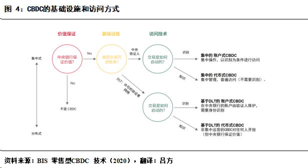 目前,CBDC及数字货币体系的技术特性主要考虑点包括:可用性、安全性与弹性、性能与可扩展性、互操作性、灵活性与适应性强以及环境友好性。而数字货币体系的核心基础设施是所运营的核心账本系统,允许发行、赎回和结算以及潜在的其他活动,目前根据技术路线不同,可分为集中式账本技术(CLT)和分布式账本技术(DLT)两种。