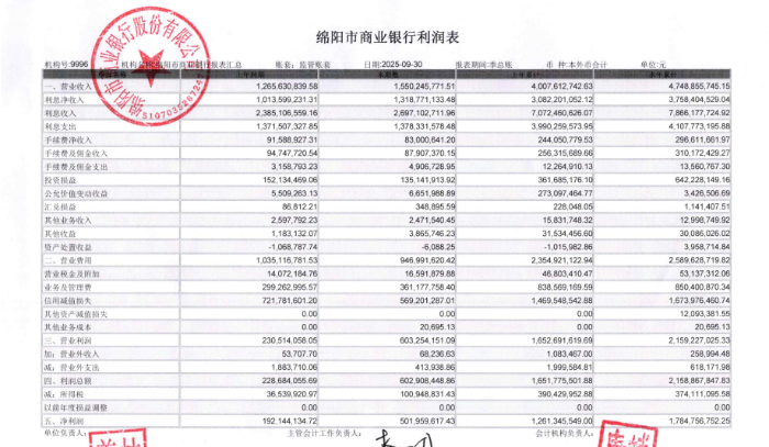 日前,绵阳市商业银行发布2025年三季报。截至9月末,该行资产总额2737.76亿元,较年初增长0.05%。