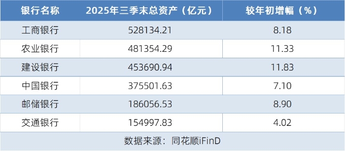 近日,六大国有银行2025年第三季度业绩报告全部披露完毕。整体来看,六家银行在资产规模、营业收入、净利润等方面均保持稳健增长,资产质量总体可控,展现出较强的经营韧性。