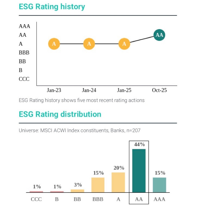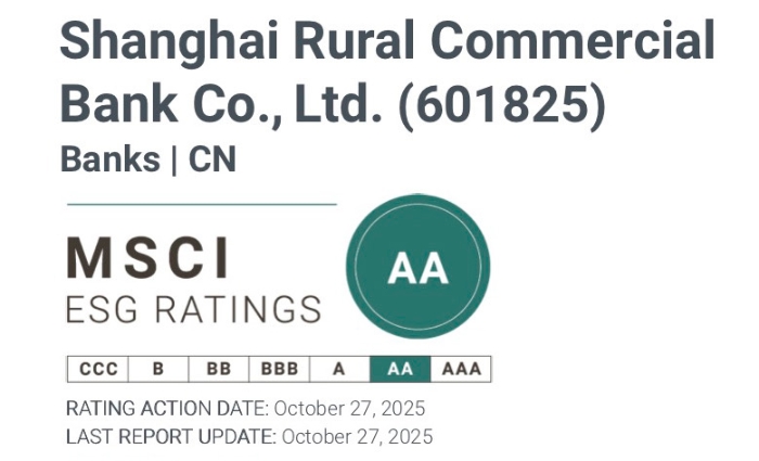 近日,国际权威指数机构摩根士丹利资本国际公司(中文简称“明晟”,英文简称“MSCI”)更新上海农商银行2025年度ESG评级,从A级跃升至AA级,在全球同业中处于领先(leader)水平。