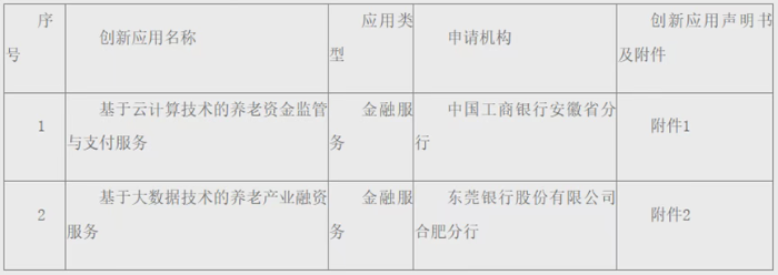该批次金融科技创新应用聚焦养老资金监管与支付、养老产业融资等场景,涉及云计算、大数据、知识图谱等技术,申请机构均为银行,包括工行、东莞银行。