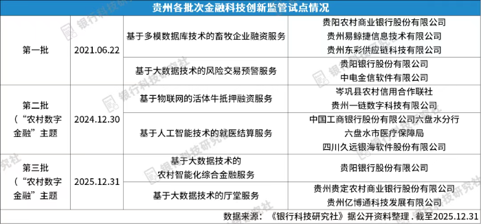 2025年12月31日,贵州省金融科技创新监管工具新一批创新对外公示,该批次以“农村数字金融”为主题,这是该地区目前为止公示的第三批金融科技创新应用。