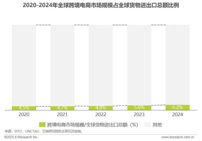 全球跨境电商市场持续扩大,货物贸易占比稳步提升,推动全球贸易数字化转型