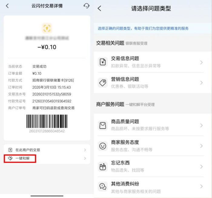 2026年3月11日,以“智享消费 品质杭州”为主题的2026年杭州市“3·15国际消费者权益日”主题活动顺利开展。现场,杭州市消保委、杭州市市场监督管理局与中国银联联合举办云闪付APP“一键和解”上线仪式,正式在杭州推出这一消费纠纷快速解决通道。该消费维权通道由市场监督管理部门牵头、中国银联联合参与,此前已在杭州率先试点,通过与支付场景的深度融合,构建高效便捷的消费纠纷化解体系,为优化消费环境、提振消费信心、助力国家促消费政策落地见效注入金融动能。